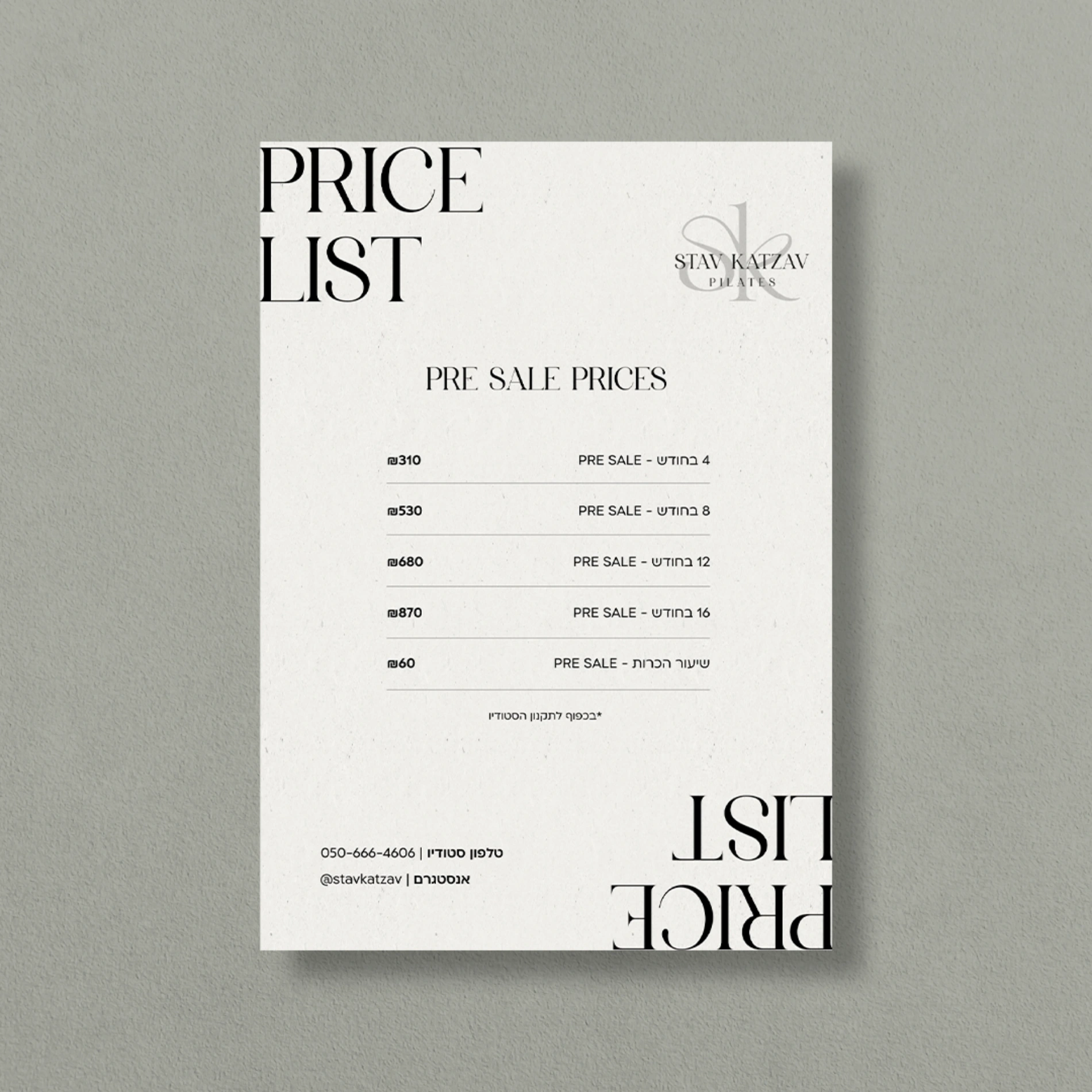 הפרויקט כלל פיתוח שפה גרפית מאופקת ונקייה, עם פלטת צבעים קלאסית, טיפוגרפיה מדויקת וסמל שמאזן בין רכות לגיאומטריה חדה – ליצירת מותג שנראה כמו בית עיצוב ולא רק סטודיו לאימון.